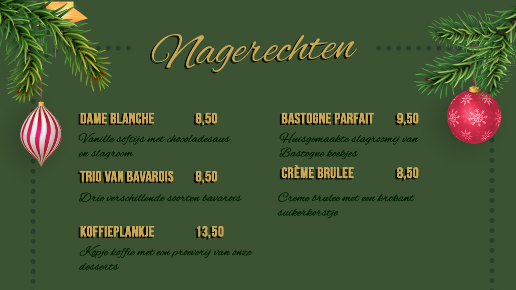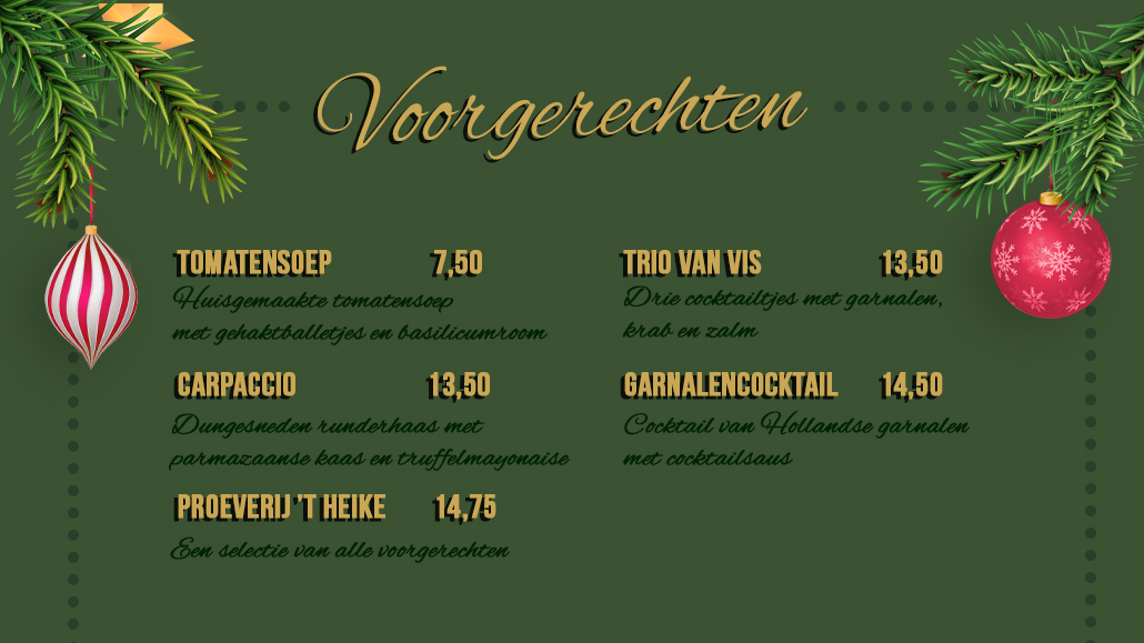 Heerlijke kleine gerechten voor een all-in prijs!* Ga jij voor een heerlijke romige tomatensoep, of ga jij voor een heerlijk klein vlees gerechtje? Deze menukaart biedt genoeg keuze!